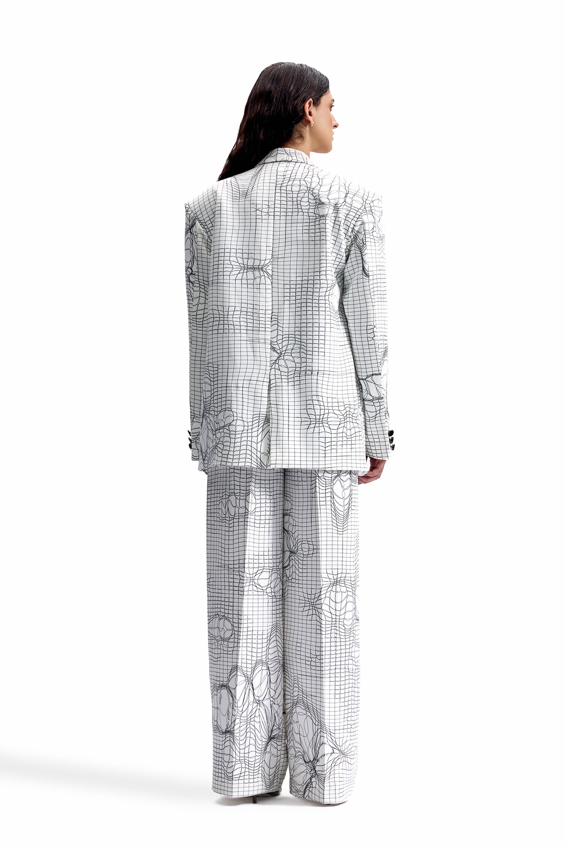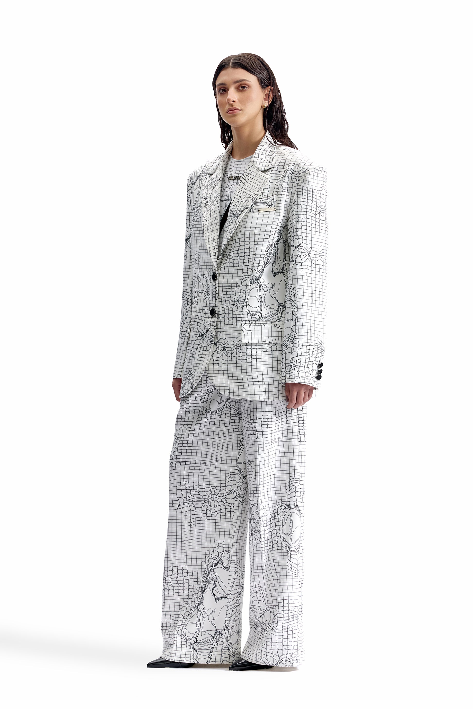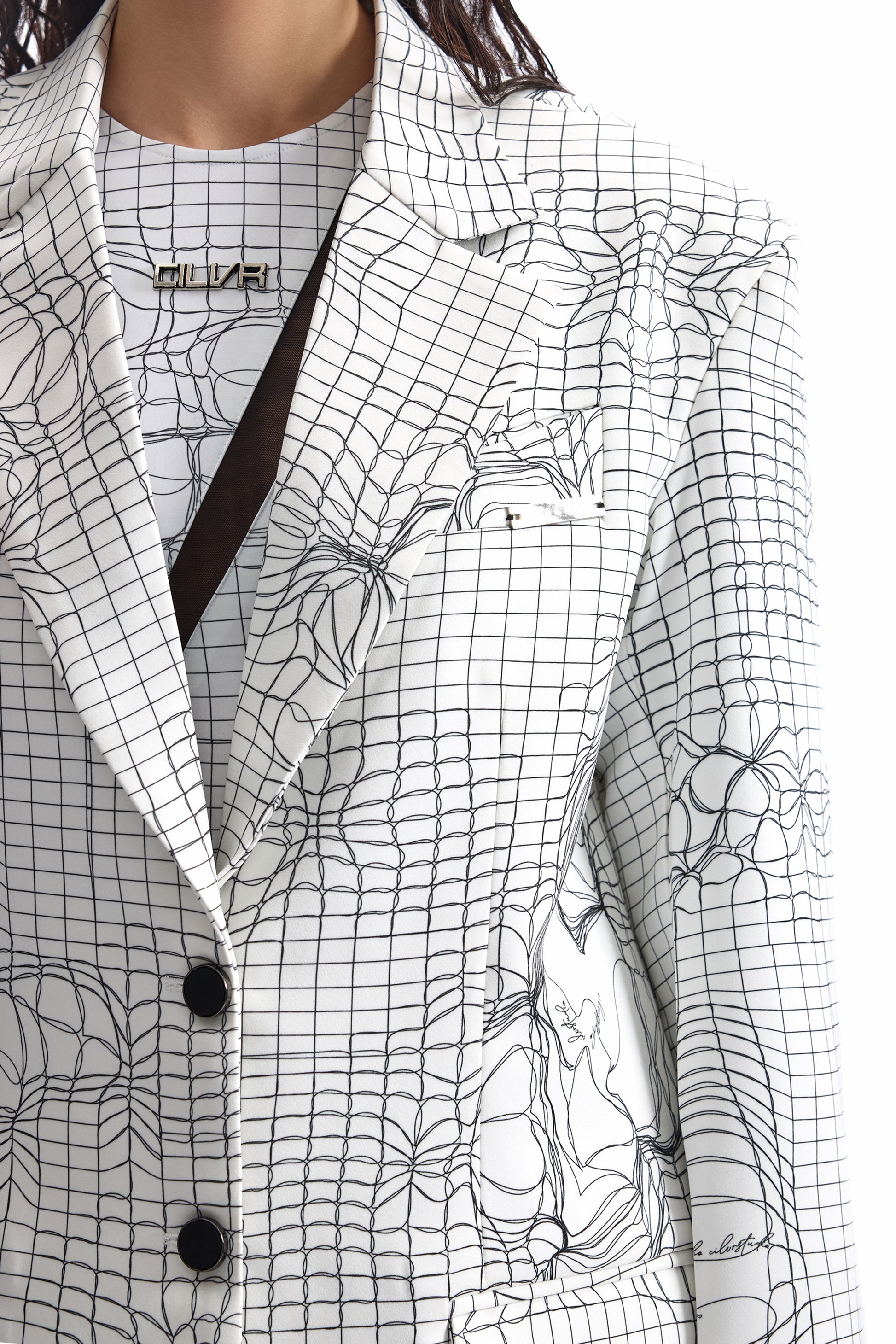 A tailored blazer crafted in CILVR’s signature entangled mesh print, designed to balance sharp structure with graphic depth.
