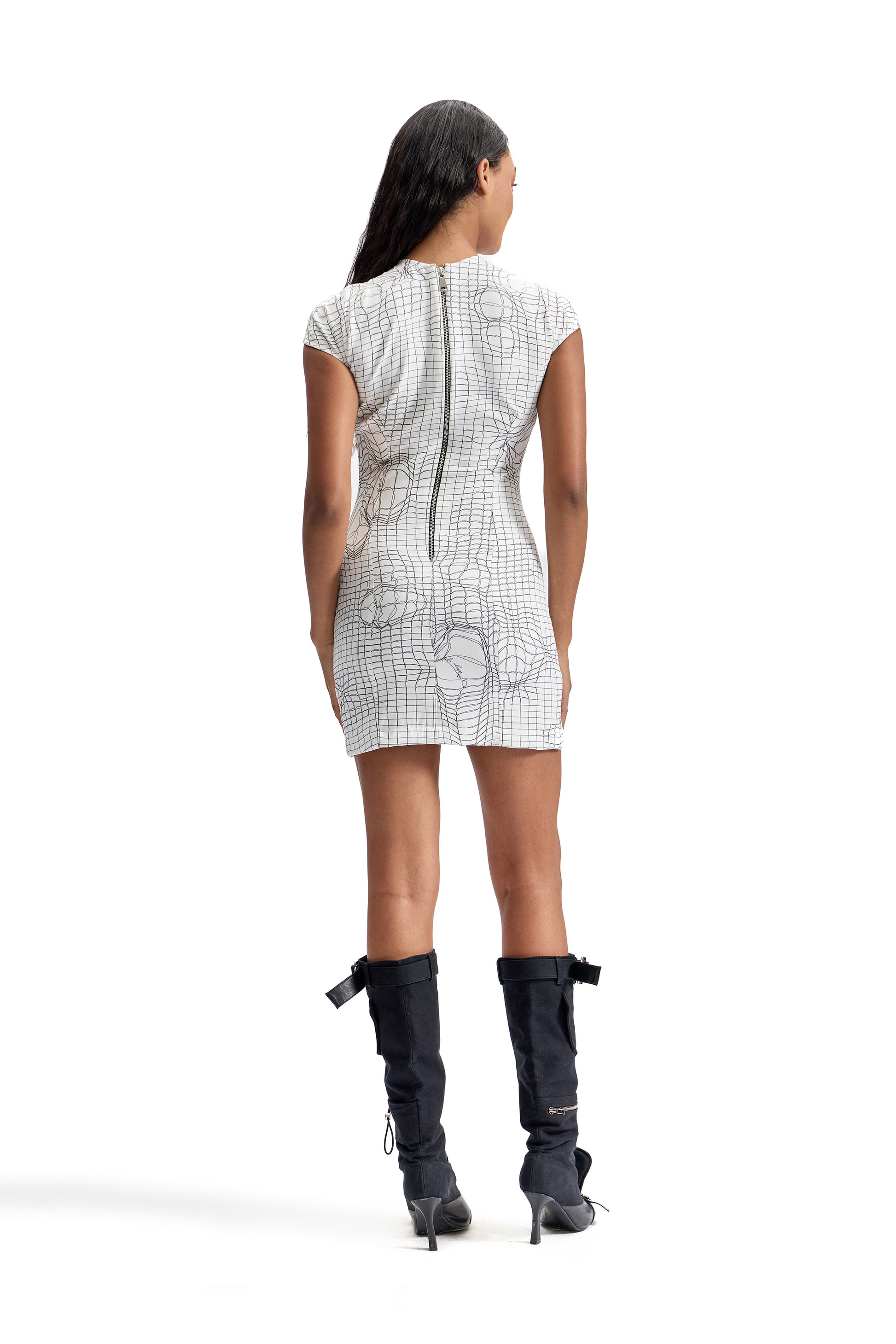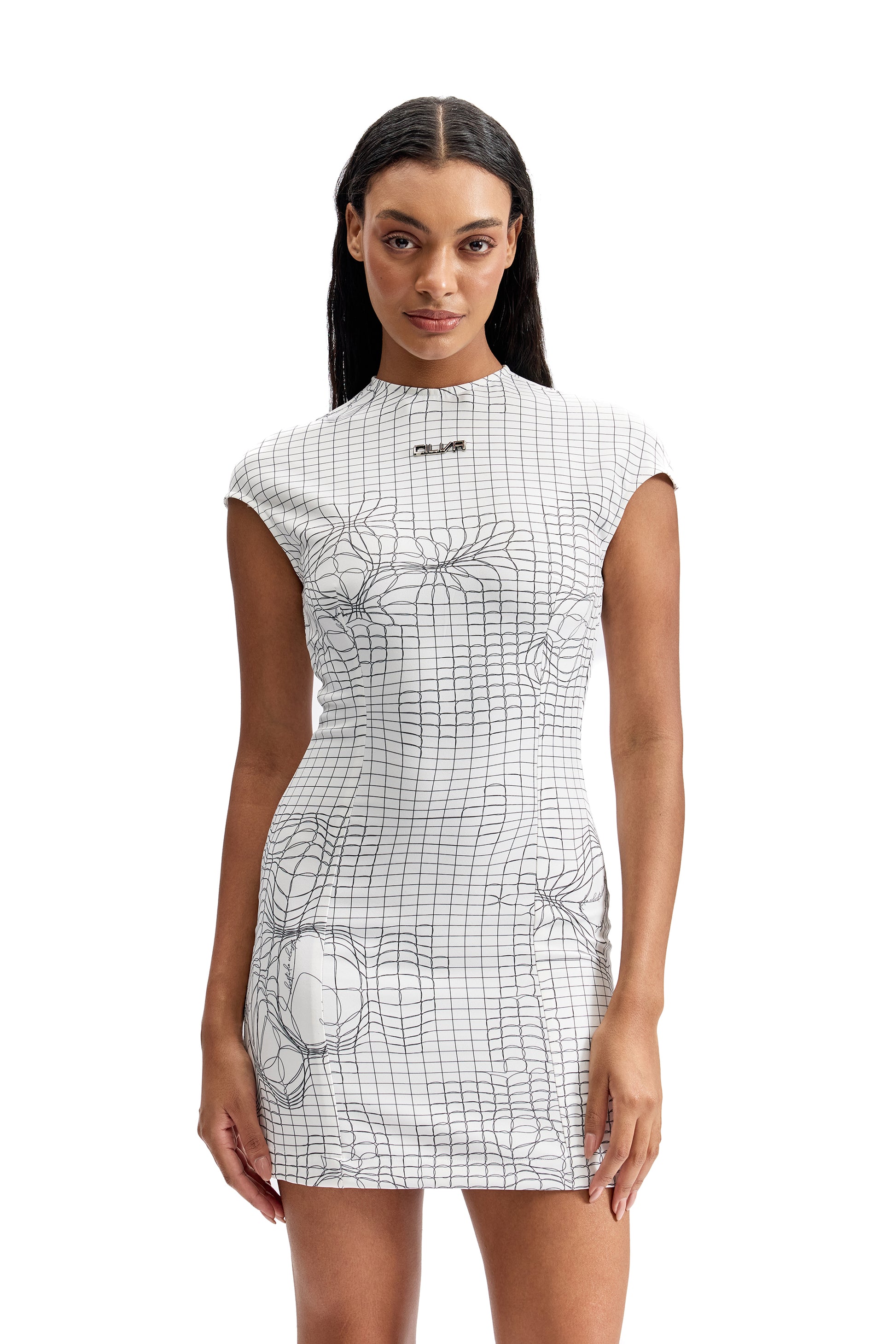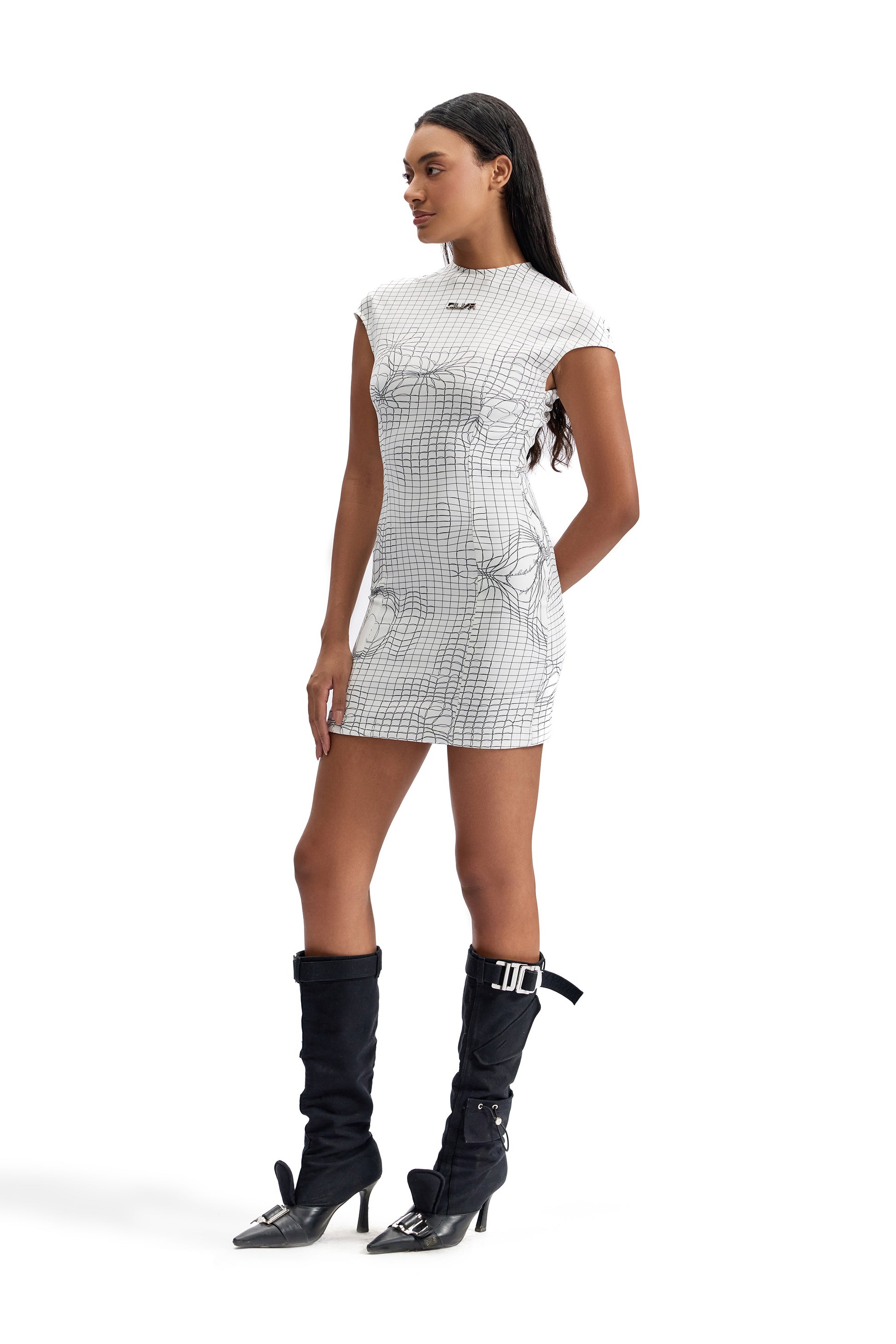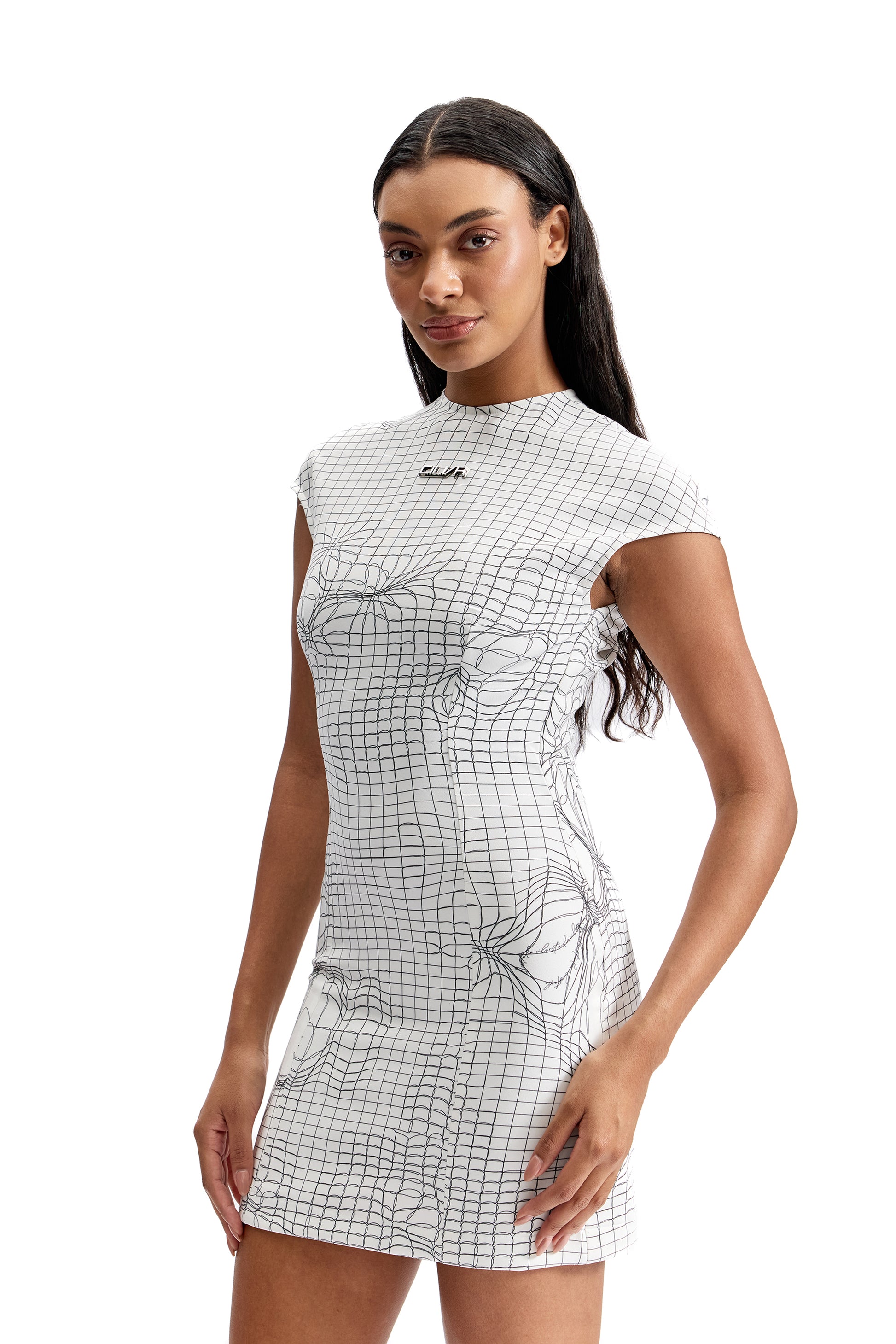 A sculpted second-skin silhouette engineered in CILVR’s signature Entangled Mesh print. Designed to contour the body with precision, this tactical mini dress blends graphic minimalism with technical stretch comfort. Clean lines, a structured high neckline, and cap sleeves create a sharp, modern profile for elevated day-to-night dressing.