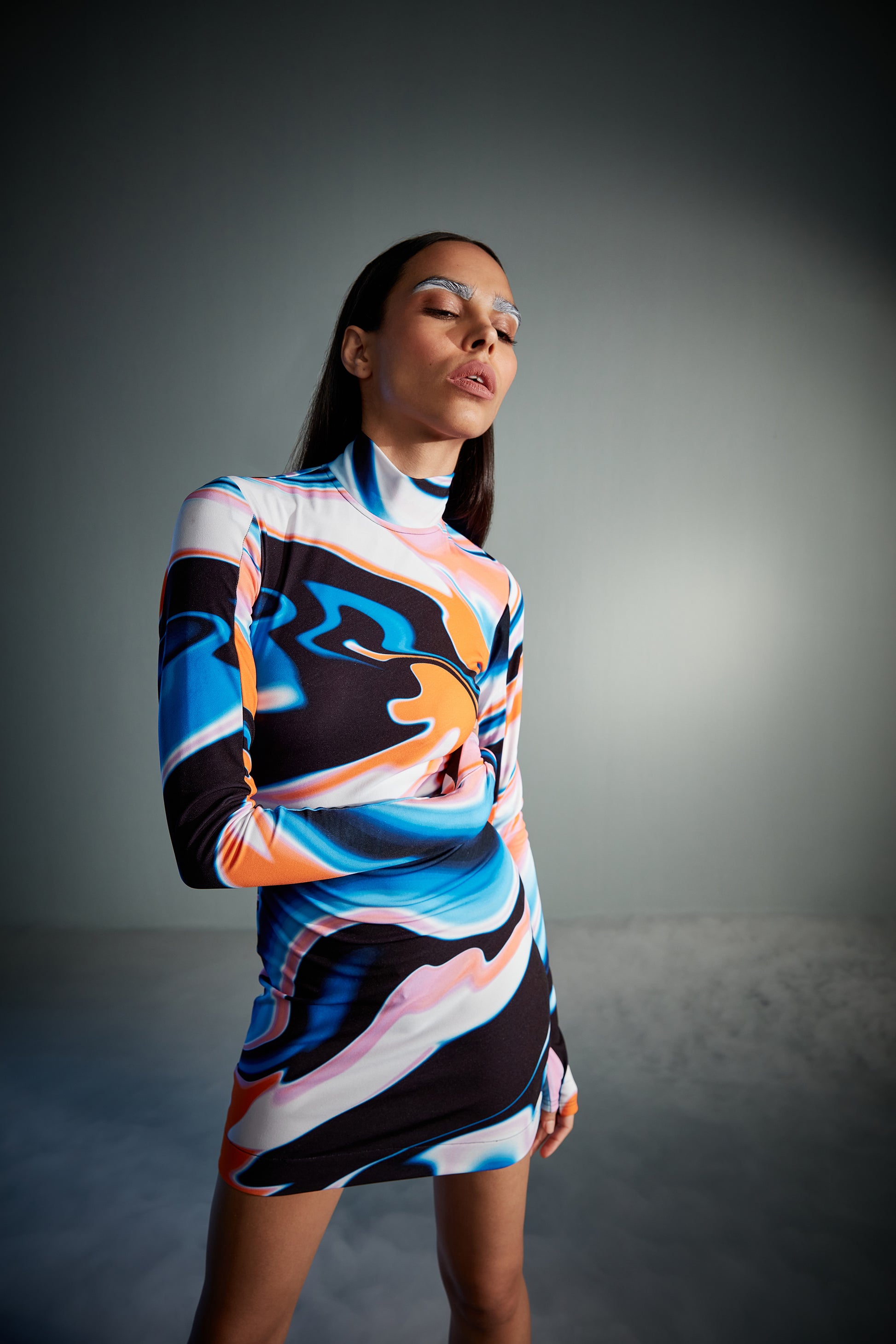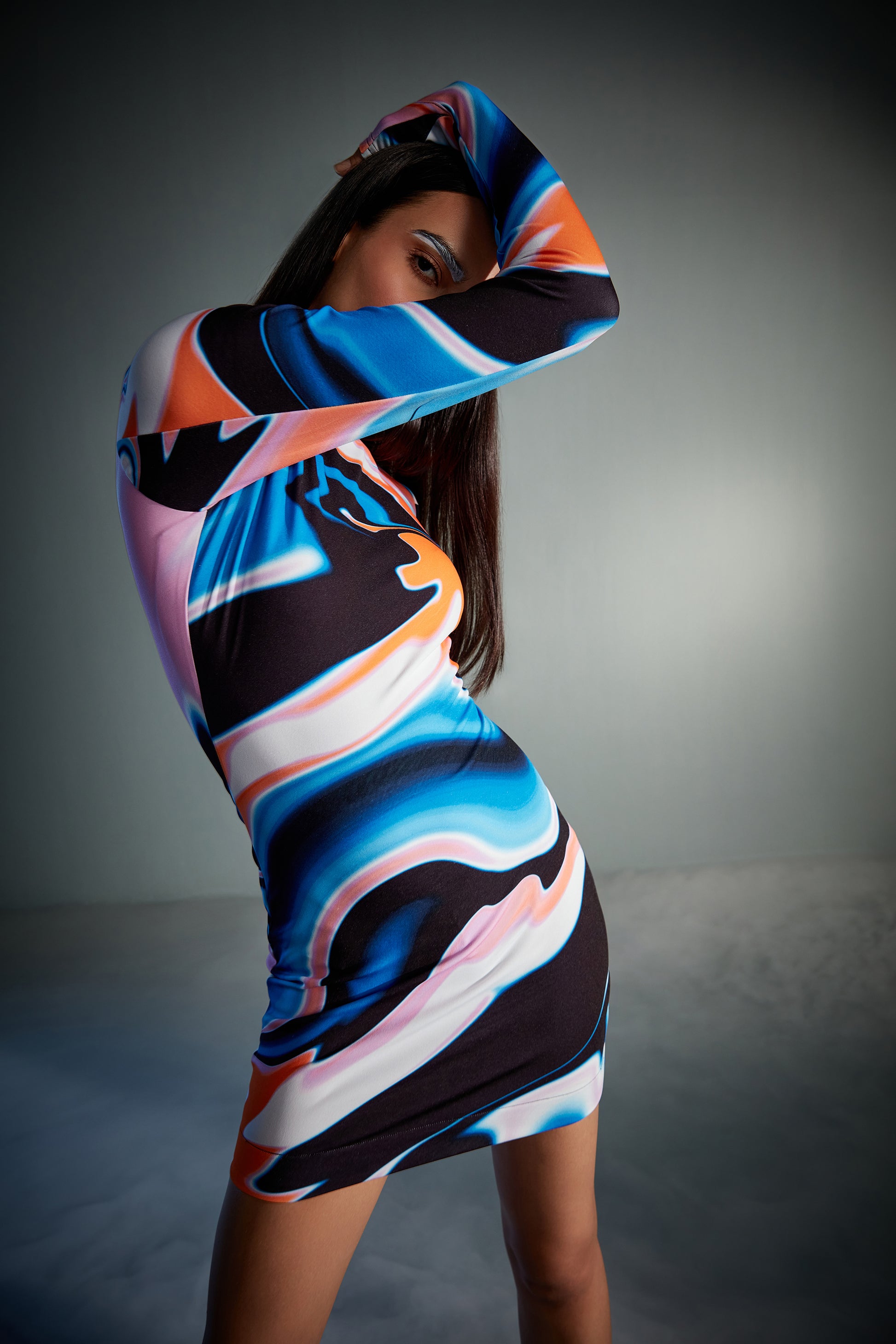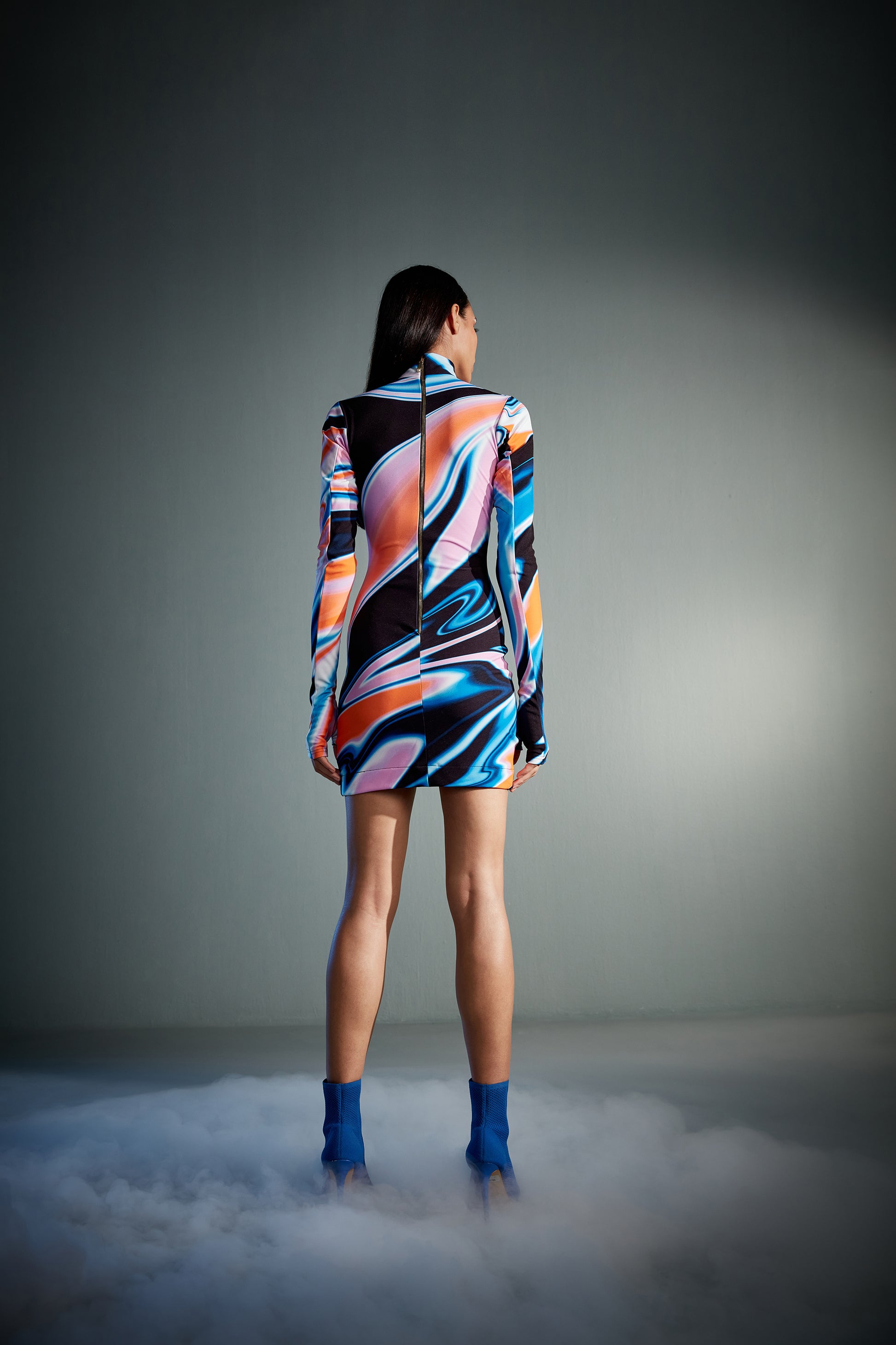 Fluid Print Mini Jersey Dress