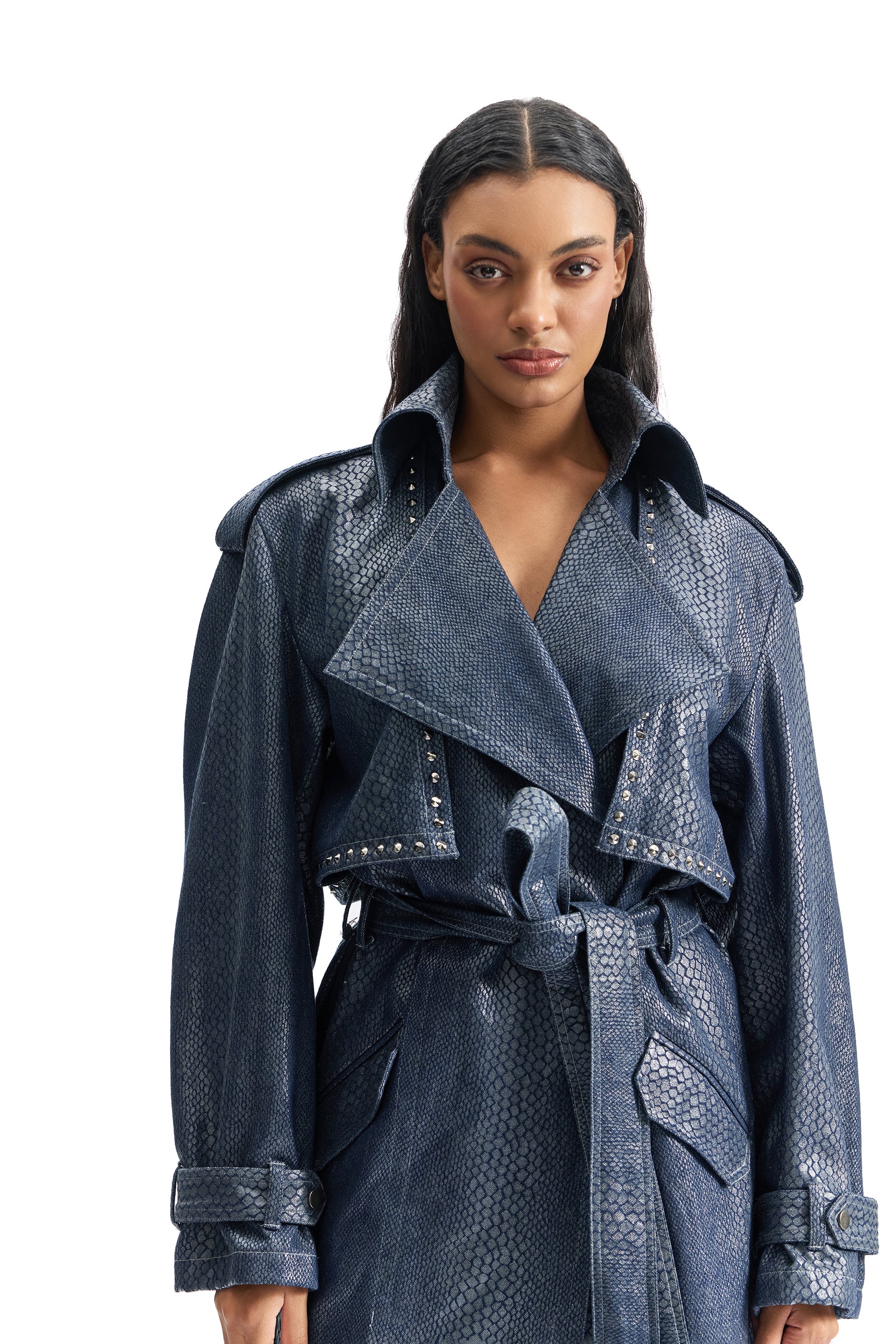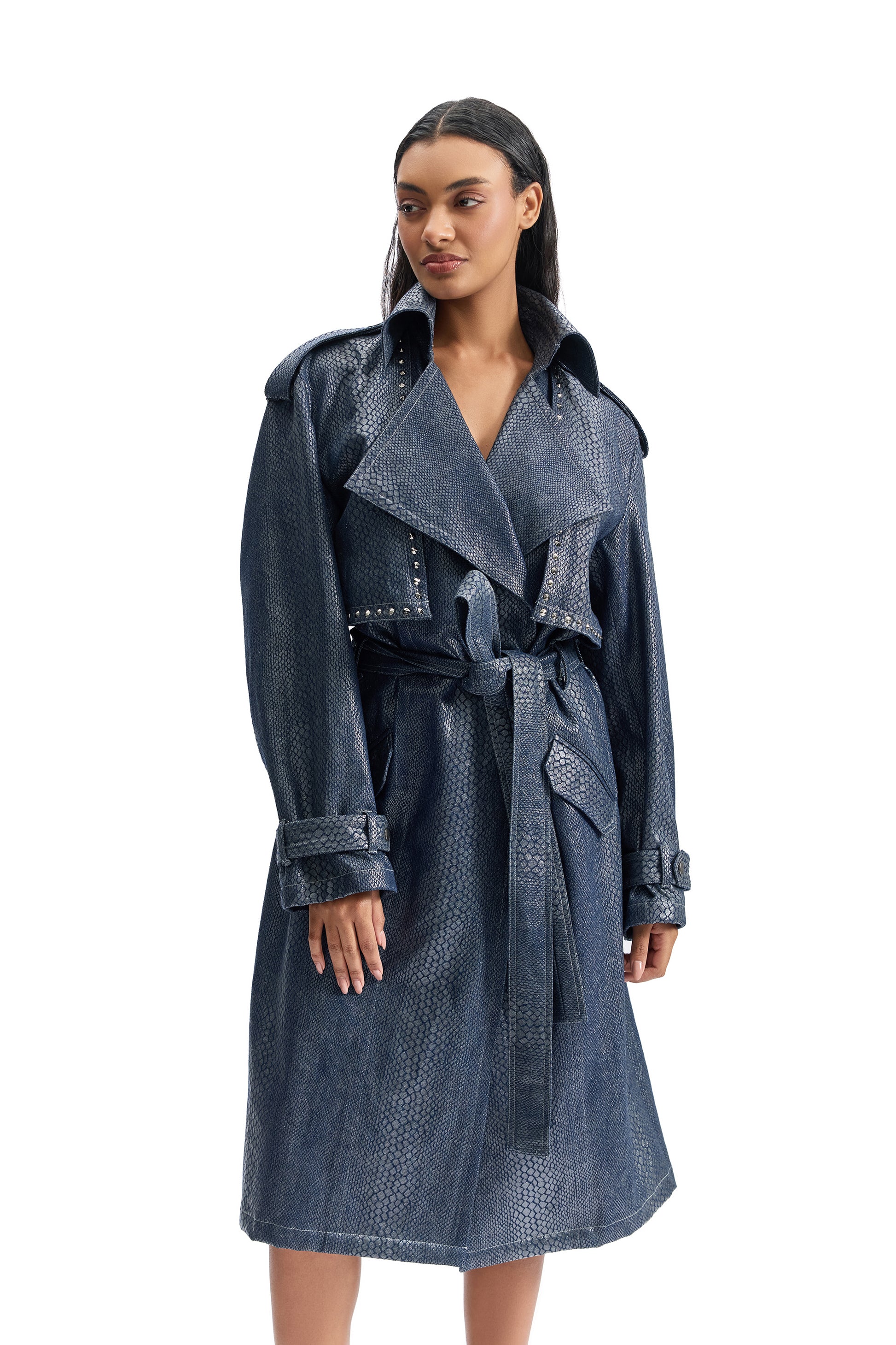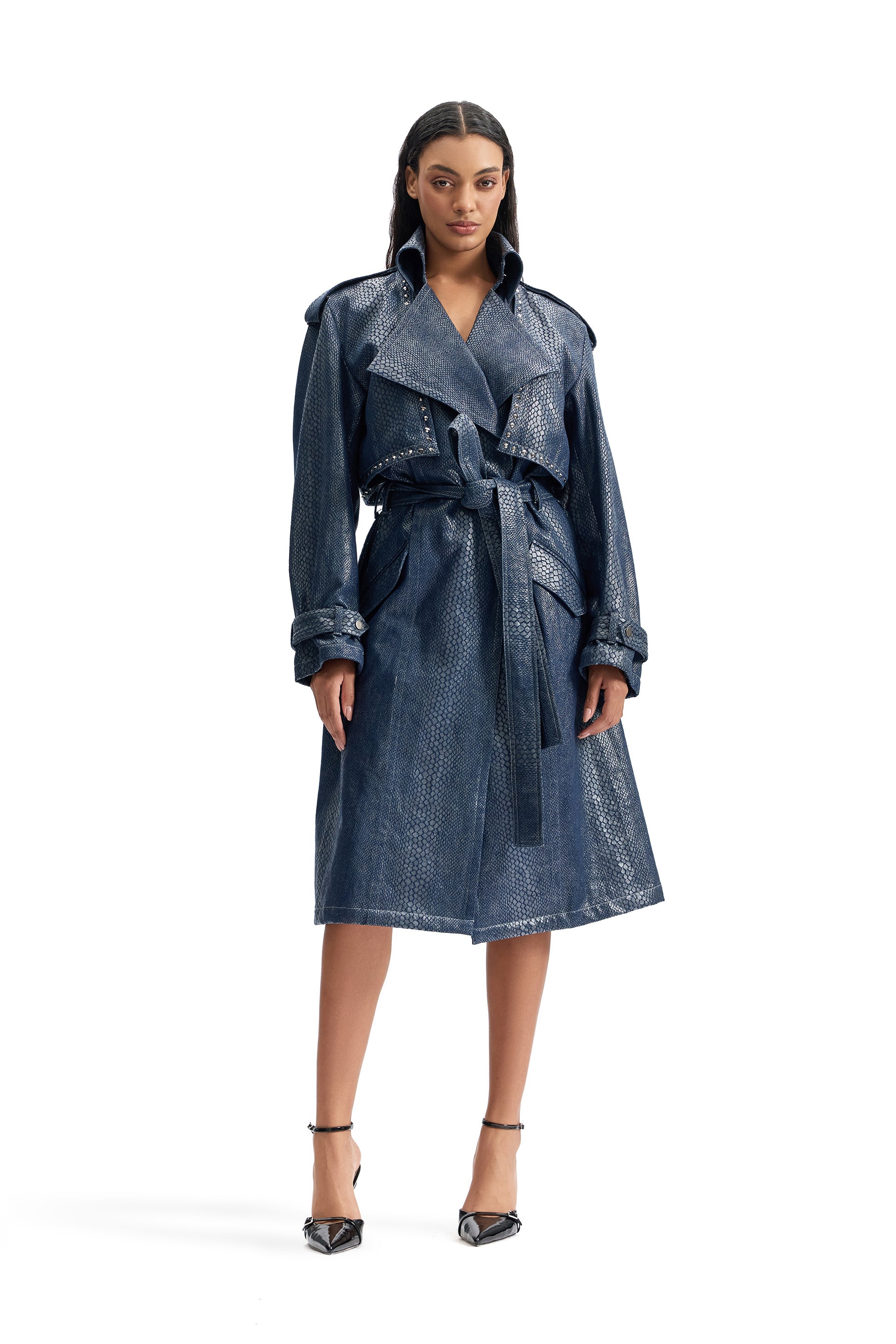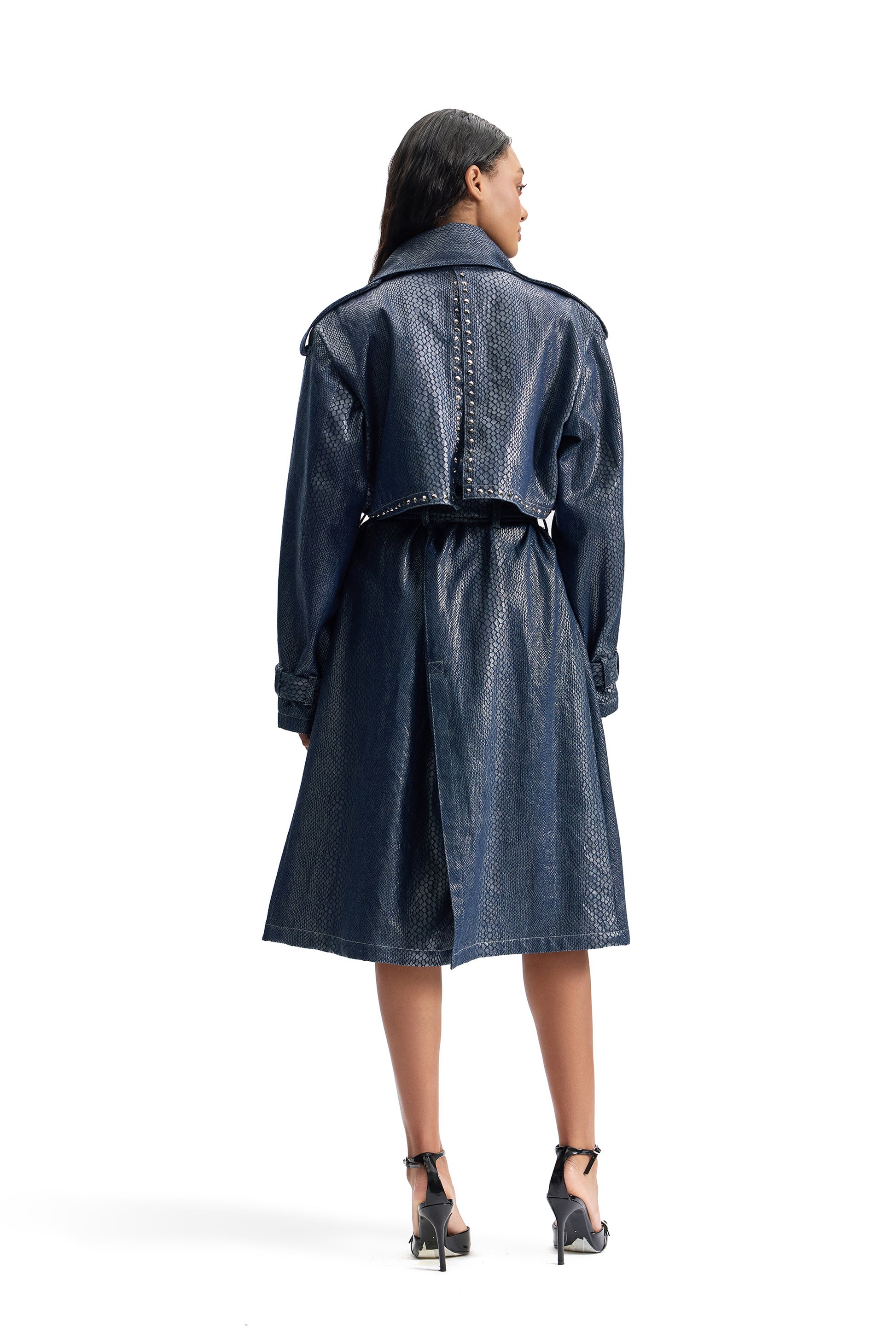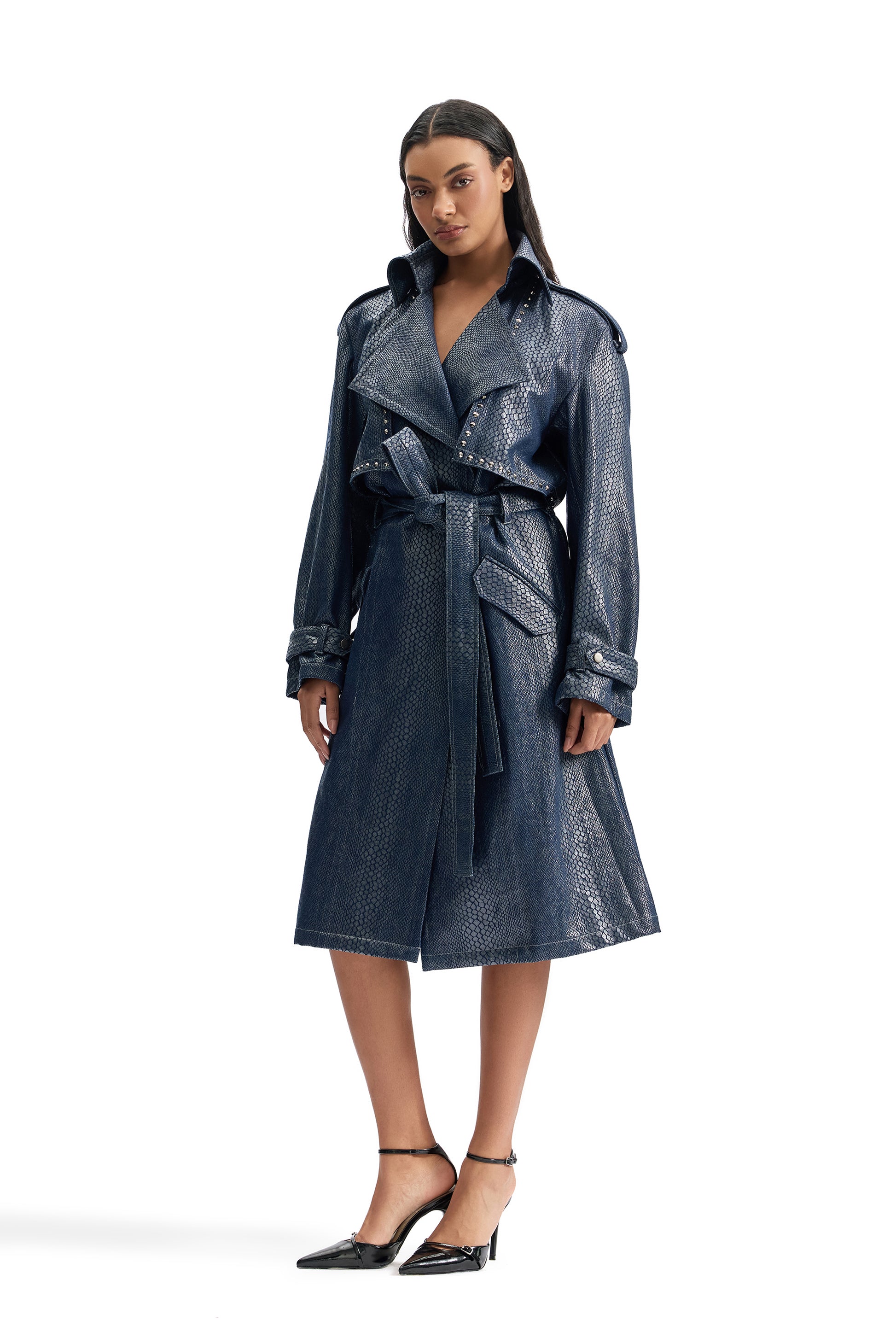Serpentine Foil Denim Trench Coat